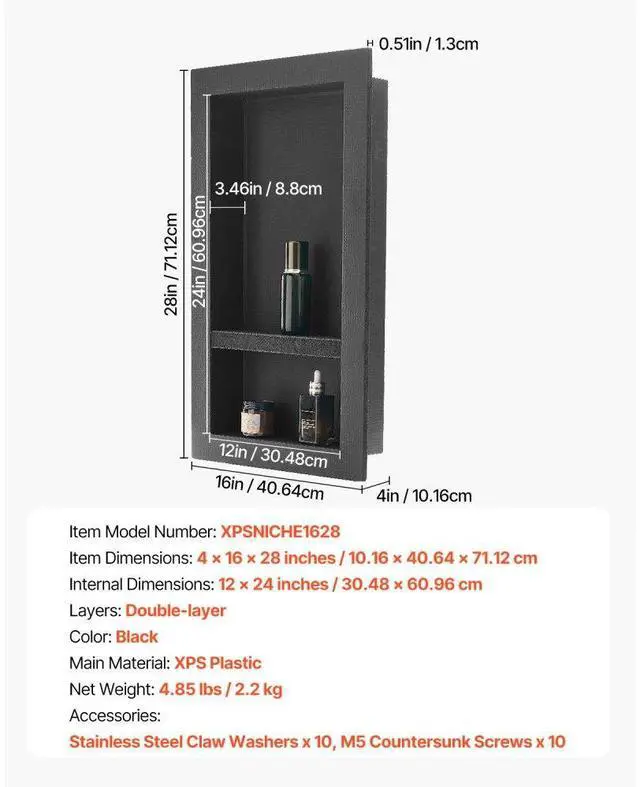 Color: Black,Item Model Number: XPSNICHE1628,Item Dimensions: 4 x 16 x 28 inches / 10.16 x 40.64 x 71.12 cm,Internal Dimensions: 12 x 24 inches / 30.48 x 60.96 cm,Layers: Double-layer,Net Weight: 4.85 lbs / 2.2 kg,Main Material: XPS Plastic
