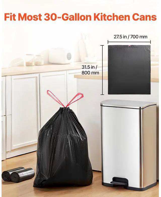 Drawstring Trash Bags Tall Kitchen Bags 30 Gallon 50 Count Garbage Bag