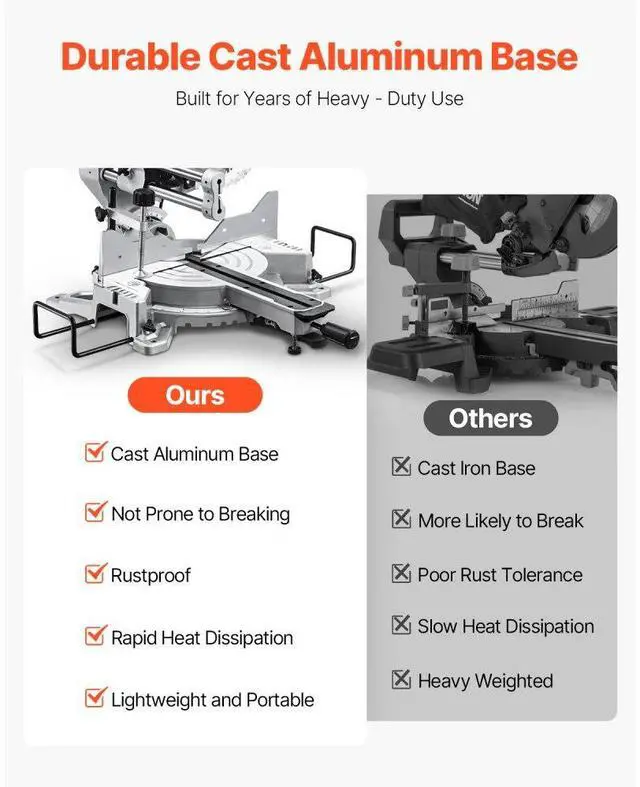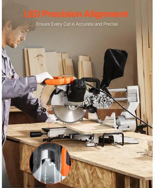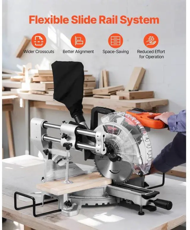 Sliding Compound Miter Saw 10-In Blade 15 Amp Motor Corded Double Bevel 60-Tooth