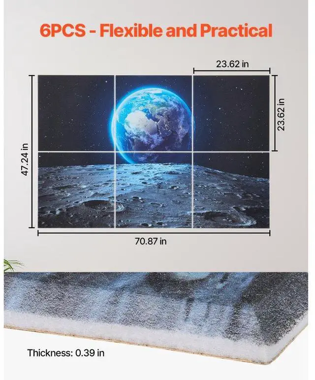 Pattern: Earth,Set Quantity: 6 pcs,Item Model Number: LYPE60606,Material Grade: E0,Item Dimensions (Single Piece): 600 x 600 x 10 mm / 23.62 x 23.62 x 0.39 inches,Net Weight: 4.46 kg / 9.83 lbs,NRC: 0.85,Main Material: Polyester Fiber,Back Adhesive: 3M, Self-adhesive