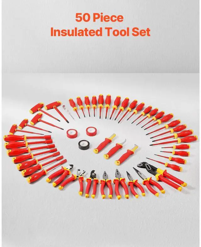 Insulated Tool Set: This 50-piece insulated screwdriver set is specifically designed for professional electricians, industrial technicians, and home users. It includes a variety of insulated tools, all meeting VDE and GS certification standards, ensuring excellent insulation performance and reducing the risk of electric shocks