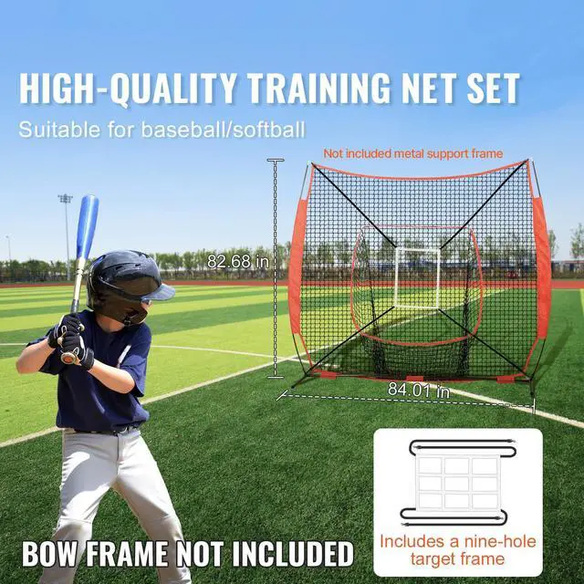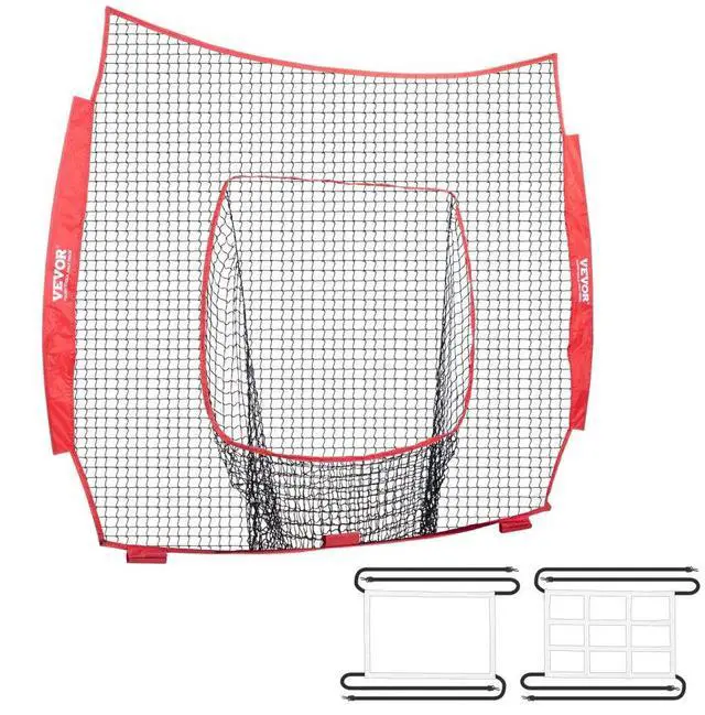 VEVOR 7x7 ft Baseball Softball Practice Net, Portable Baseball Training Net for Hitting Batting Catching Pitching, Backstop Baseball Equipment Training Aids with Strike Zone