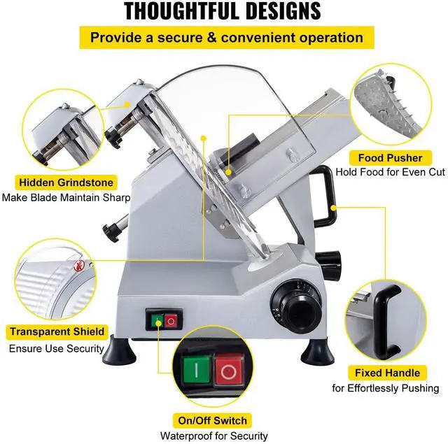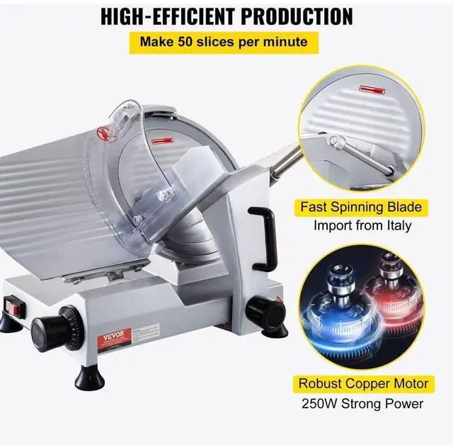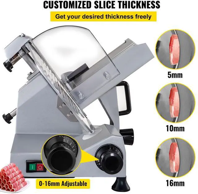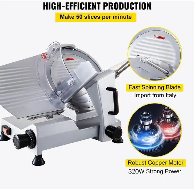 VEVOR Commercial Meat Slicer, 320W Electric Deli Food Slicer, 12 inch Carbon Steel Blade Electric Food Slicer, 350-400RPM Meat Slicer, 0-0.6 inch Adjustable Thickness for Meat, Cheese, Veggies, Ham