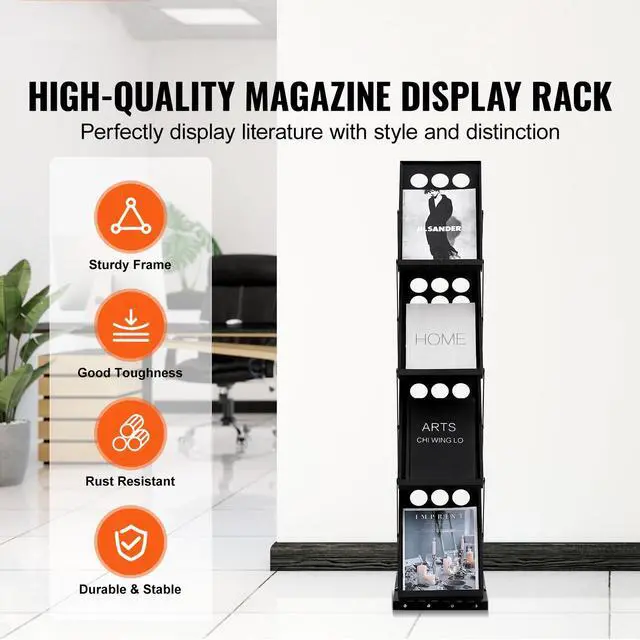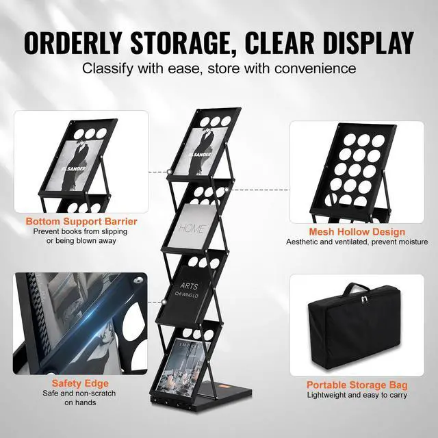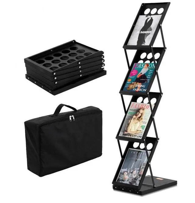 VEVOR Foldable Magazine Display Rack, 4-Tier Brochure Literature Display Stand, Portable Catalog Brochure Holder Stand with Carrying Bag for Office Trade Show Exhibitions, 4 Pockets