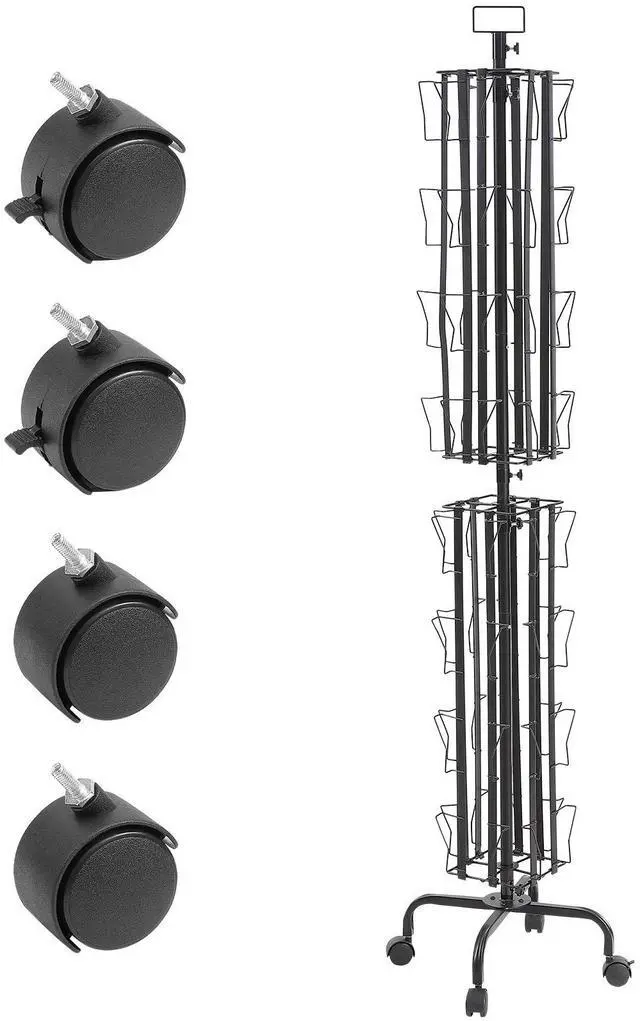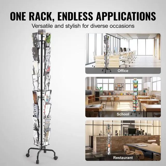 VEVOR Greeting Cards Display Rack, 32 Pockets Rotating Postcard Brochure Display Stand, 360° Spinning Card Display Rack with Sign Holder & 4 Wheels (2 Lockable) for Exhibitions Office Trade Show