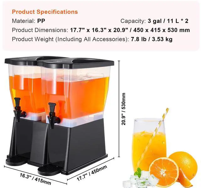 VEVOR Beverage Dispenser, 3 Gallon x 2 Drink Dispensers for Parties, Plastic Juice Dispenser with Stand Spigot Lid, Iced Tea Lemonade Juice Water Dispenser, for Restaurants, Hotels, Parties