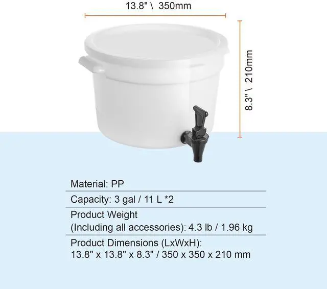 Capacity: 3 gal / 11 L *2,Material: PP + PC,Product Dimensions (L x W x H): 13.8" x 13.8" x 8.3" / 350 x 350 x 210 mm,Product Weight (Including all Accessories): 4.3 lb / 1.96 kg