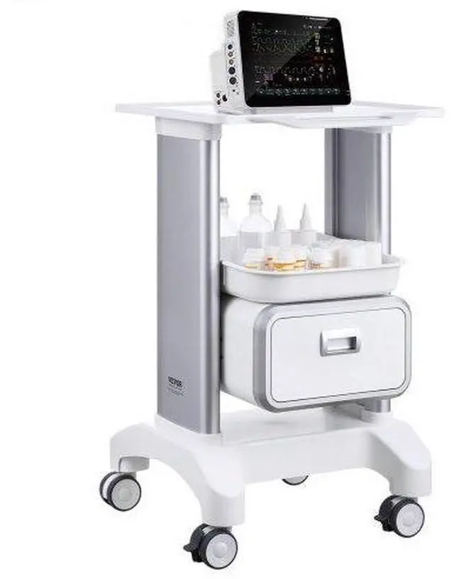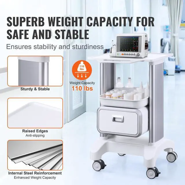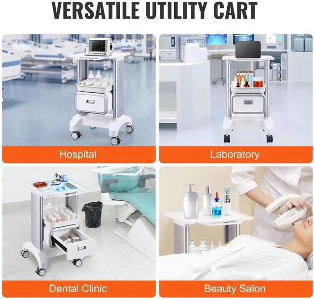 VEVOR 2 Tiers Lab Carts Mobile Medical Cart with 1 Drawer & 1 Top Tray White, Trolley Storage Cart with ABS Material, Lab Rolling Cart with 4 Silent Wheels for Lab, Clinic, Hospital, Salon, Office