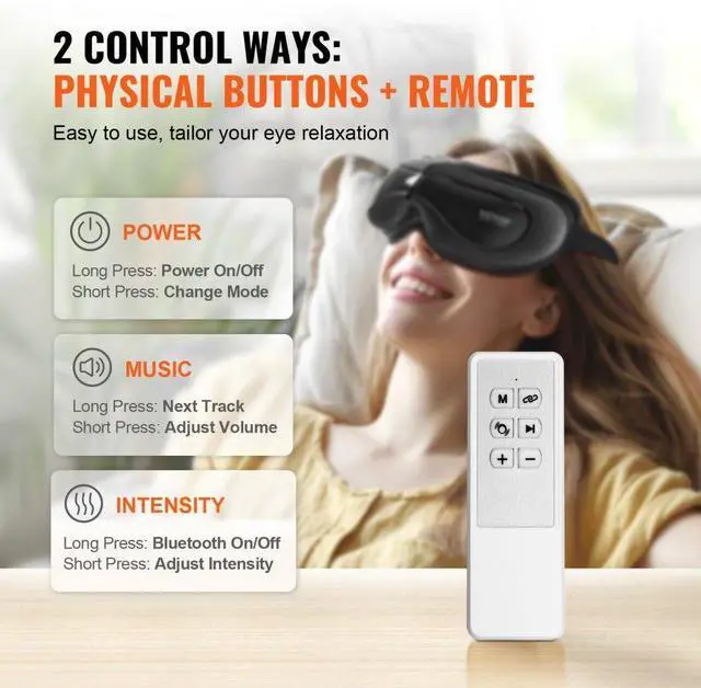 VEVOR Eye Massager with Heat & Remote Eye Care Device 5 Modes Bluetooth Music