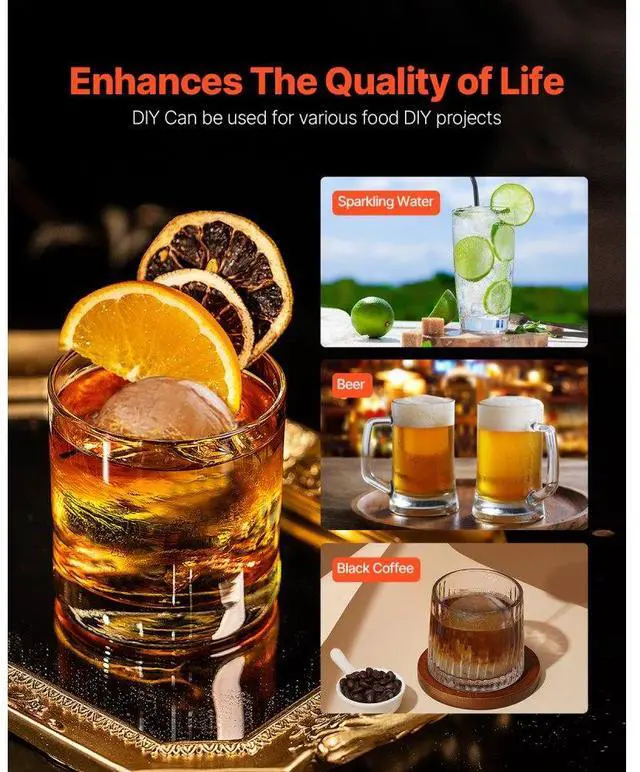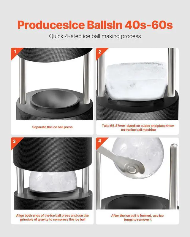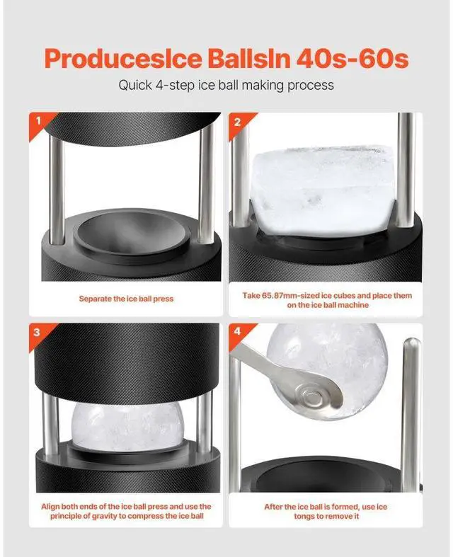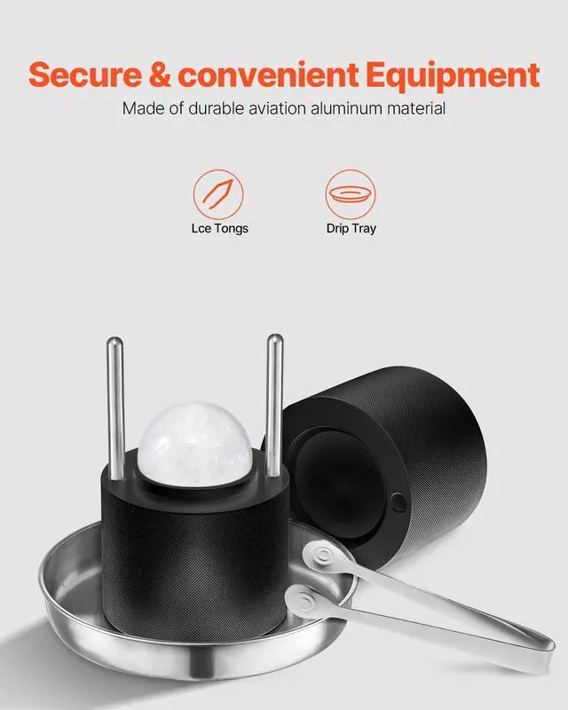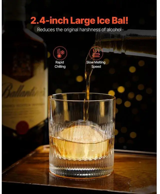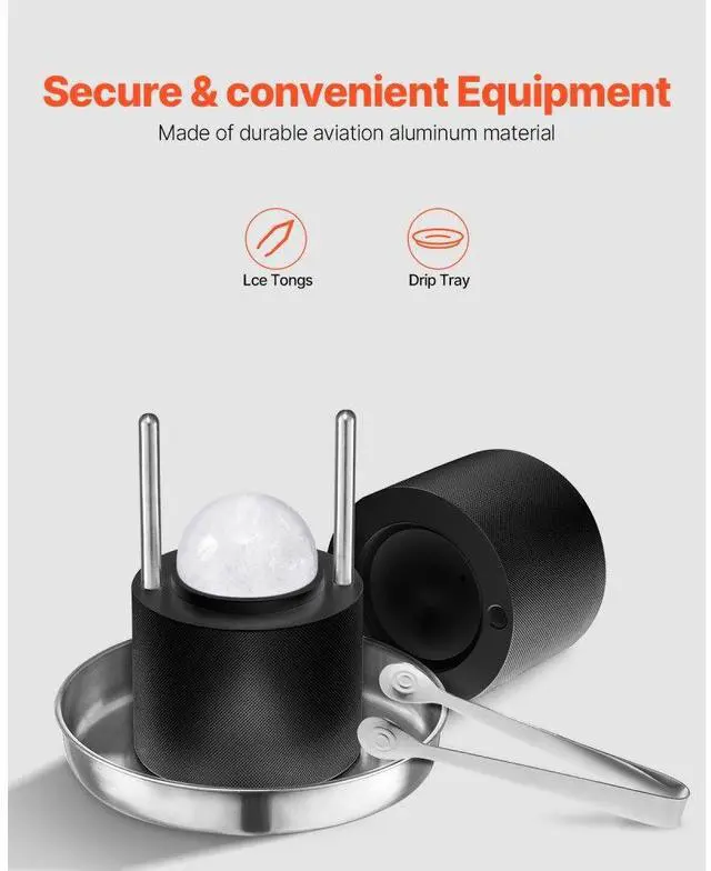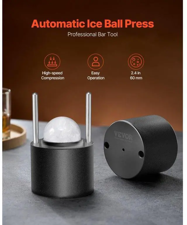 VEVOR Ice Ball Press Kit Ice Ball Maker 2.4"/60mm Clear Sphere Whiskeys Cocktail Scot