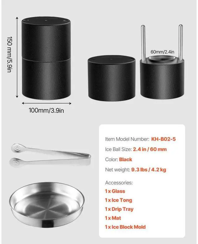 Color: Black,Item Model Number: KH-B02-5,Ice Ball Size: 2.4 in / 60 mm,Net Weight: 9.3 lbs / 4.2 kg