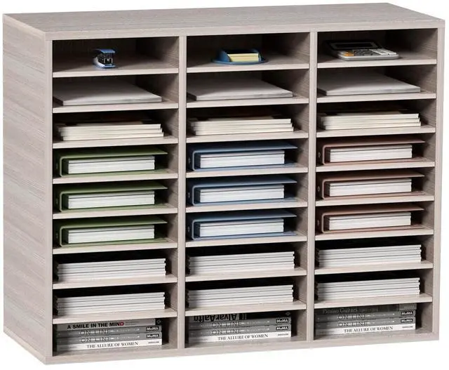 VEVOR 27 Compartments Wood Literature Organizer, Adjustable Shelves, Medium Density Fiberboard Mail Center, Office Home School Storage for Files, Documents, Papers, Magazines, Grey
