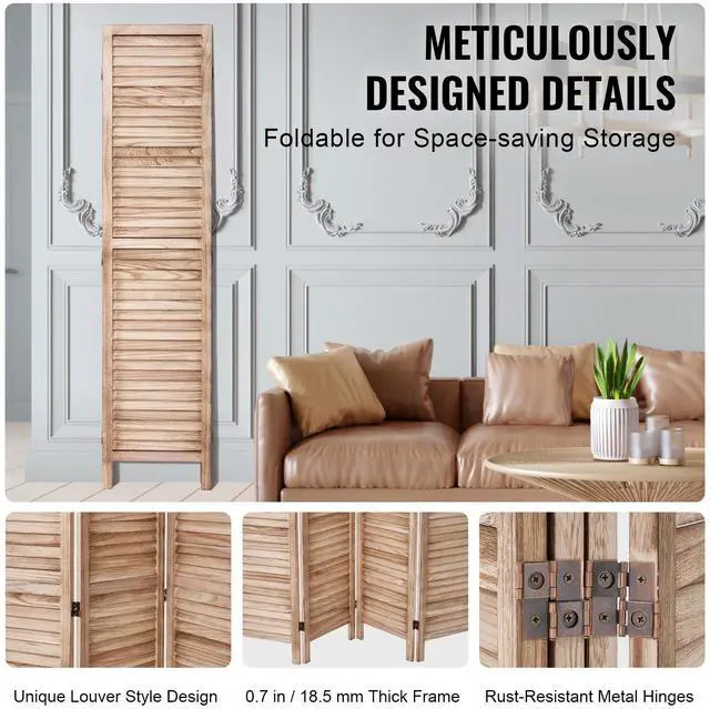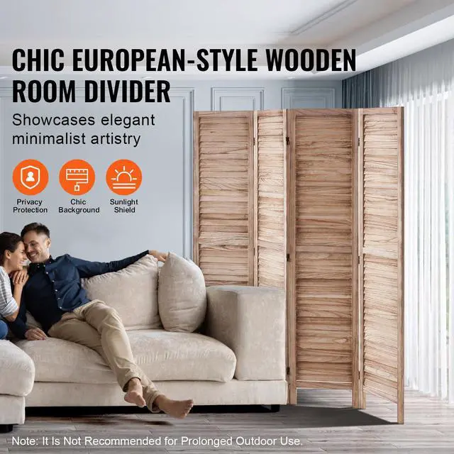 VEVOR Wood Room Divider, 4 Panel Wood Folding Privacy Screen, 66.9 Inches Tall Indoor Louvered Wooden Partition, Portable Decoration Screen, for Room Separation, Home, Office, Restaurant & Bedroom