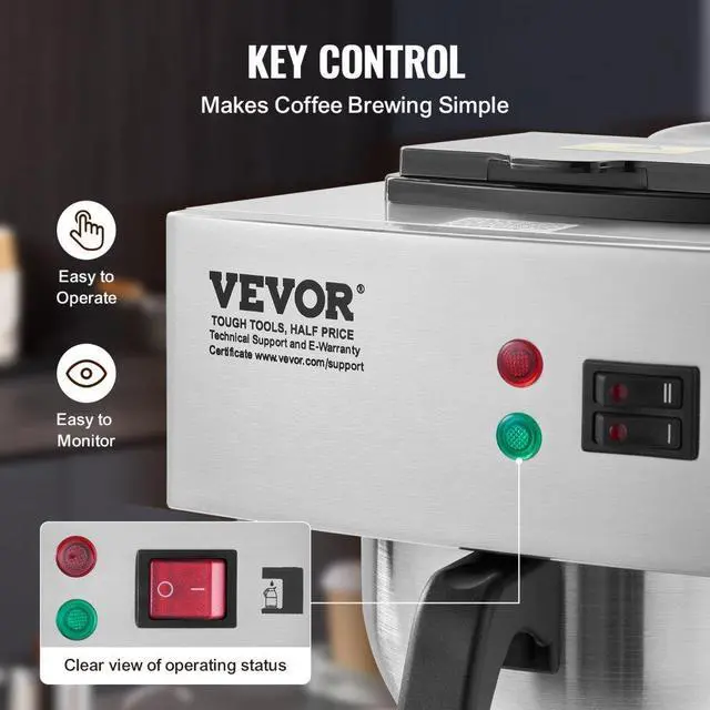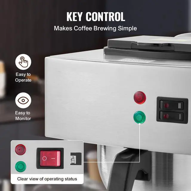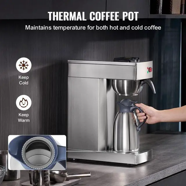 12 Cups Commercial Drip Coffee Maker with Thermal Carafe Restaurant Office Cafe