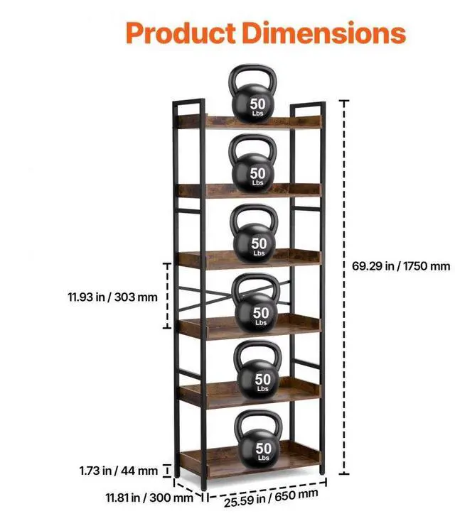 • Metal Bookshelf Rustic Bookshelf 6-Tier for Living room Bedroom & Office