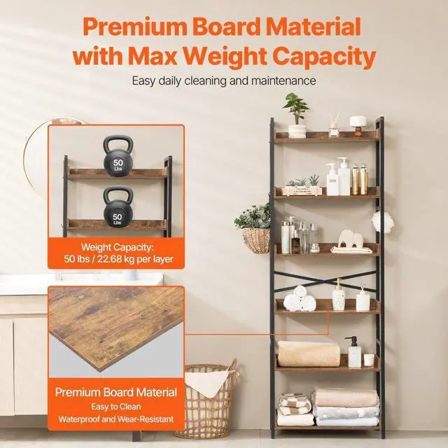 VEVOR Metal Bookshelf Rustic Bookshelf 6-Tier for Living room Bedroom & Office