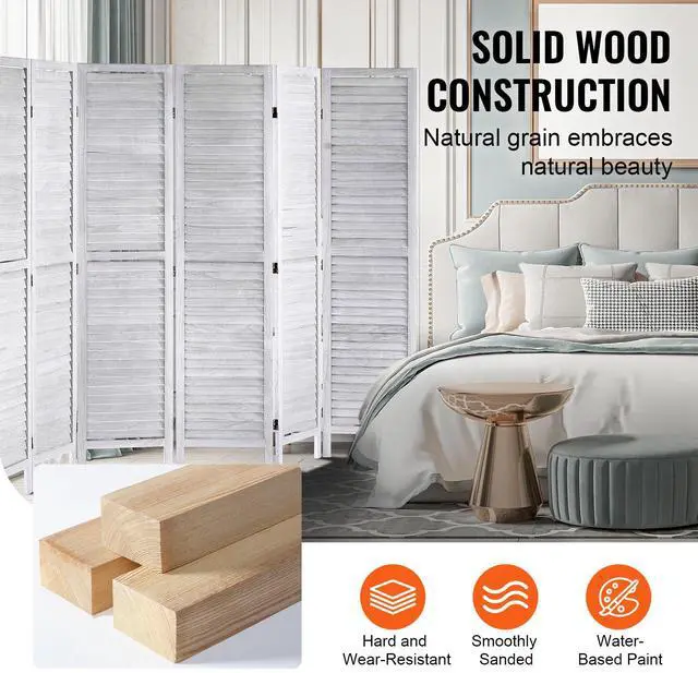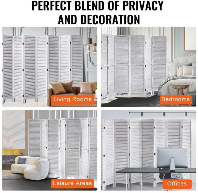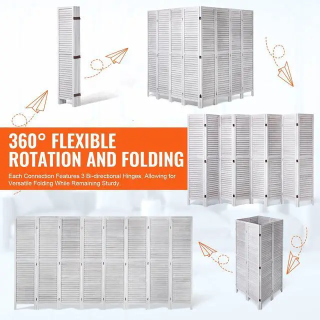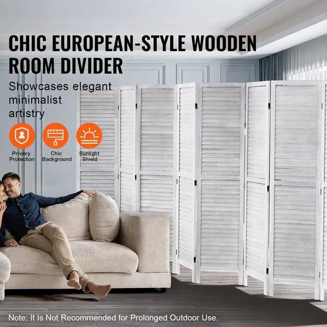 VEVOR Wood Room Divider, 8 Panel Wood Folding Privacy Screen, 66.9 Inches Tall Indoor Louvered Wooden Partition, Portable Decoration Screen, for Room Separation, Home, Office, Restaurant & Bedroom