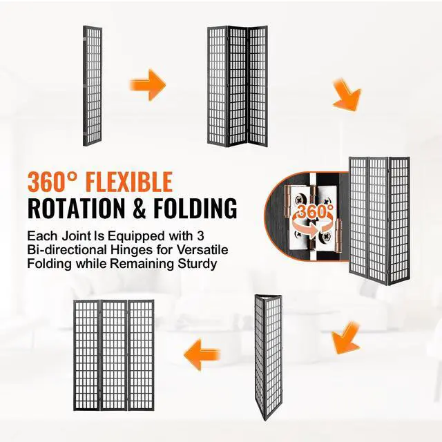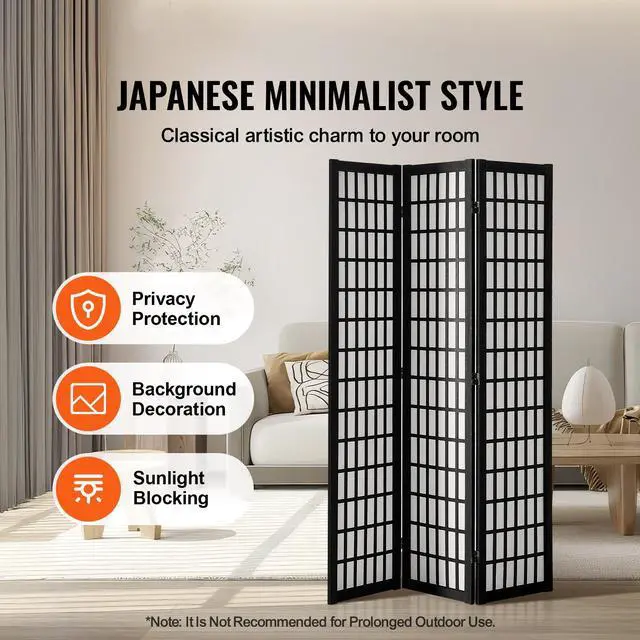 VEVOR Room Divider, 3 Panel Japanese Room Divider, Wood Folding Privacy Screen Indoor, Japanese Partition Dividers Portable Decoration Screens, for Room Separation Home Office Restaurant & Bedroom