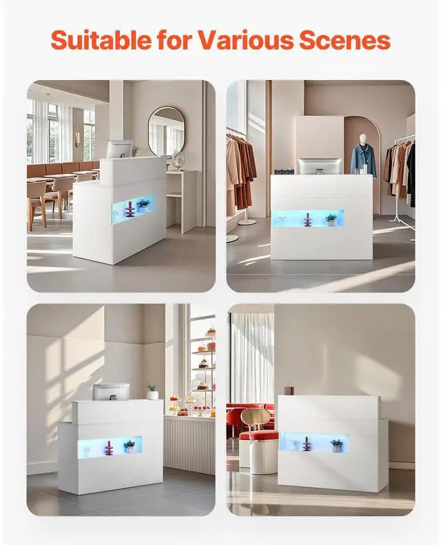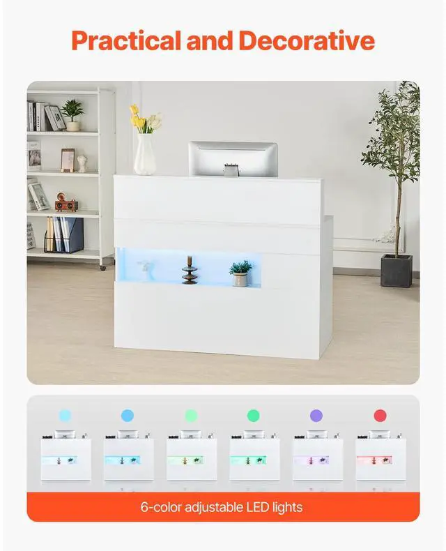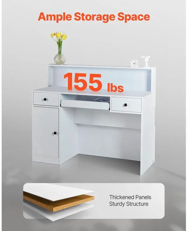 VEVOR Reception Desk Rectangular Front Counter Table 47.24 in White Office Table