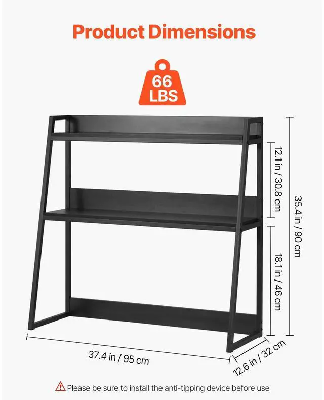 Color: Black,Shelf Board Thickness: 0.5" / 12 mm,Second Shelf Spacing: 12.1" / 30.8 cm,Product Size: 37.4" x 12.6" x 35.4" / 95 x 32 x 90 cm,First Shelf Spacing: 18.1" / 46 cm,Number of Shelves: 2,Other Details:,Weight Capacity: 66 lbs / 30 kg,Shelf Dimensions:,Anti-slip feet pads:,Item Model Number: KLBS-07,Anti-tip accessories:,Net Weight: 17.6 lbs / 8 kg,Main Material: Particle Board + Melamine Paper + Q195A