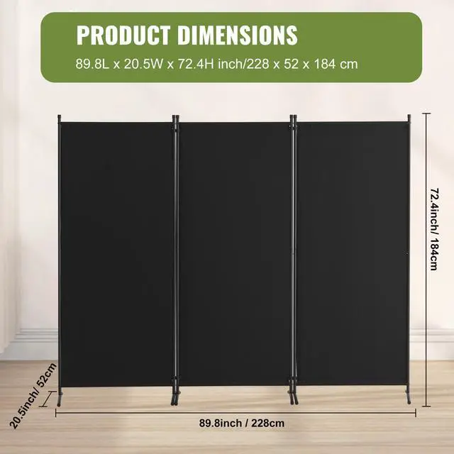 VEVOR Room Divider, 102×71inch Room Dividers and Folding Privacy Screens 3-Panel, Fabric Partition Room Dividers for Office, Bedroom, Dining Room, Study, Freestanding, Black