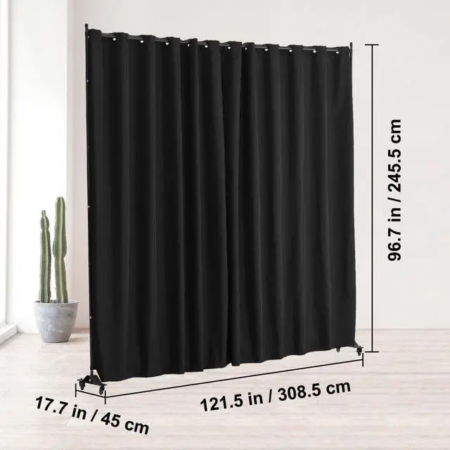 VEVOR Room Divider, 96×120inch Portable Panel Room Divider with Wheels Curtain Divider Stand, Room Divider Privacy Screen for Office, Bedroom, Dining Room, Study, Black