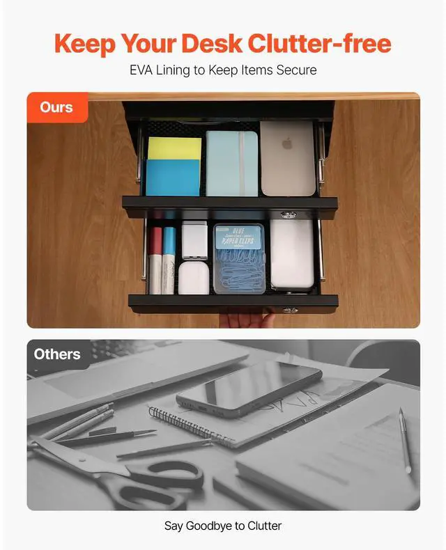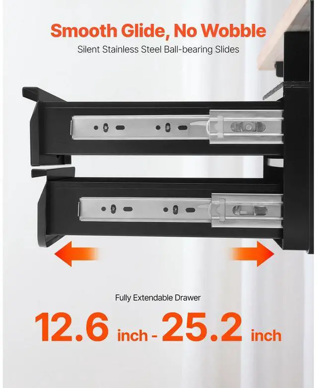 2 Drawer 13" Lockable Under Desk Drawer Organizer Slide-out Drawer Home Office