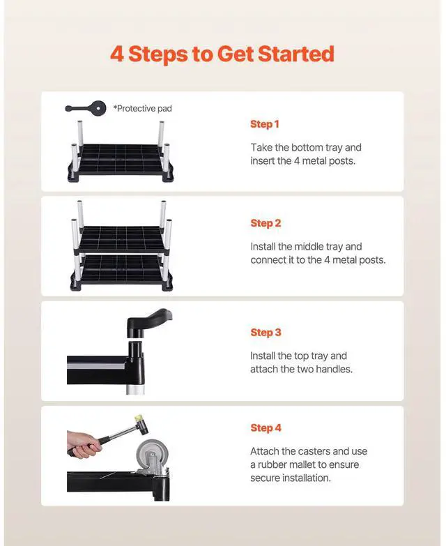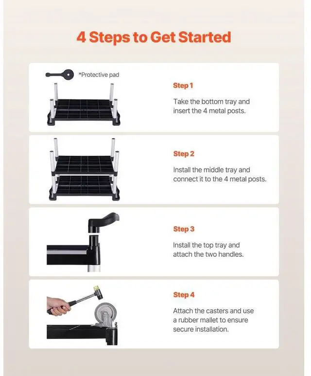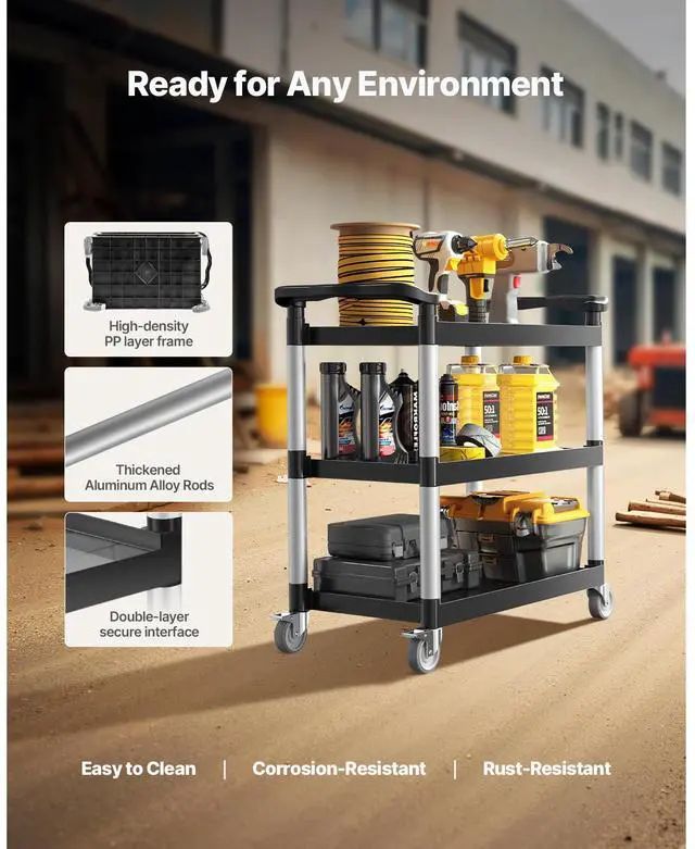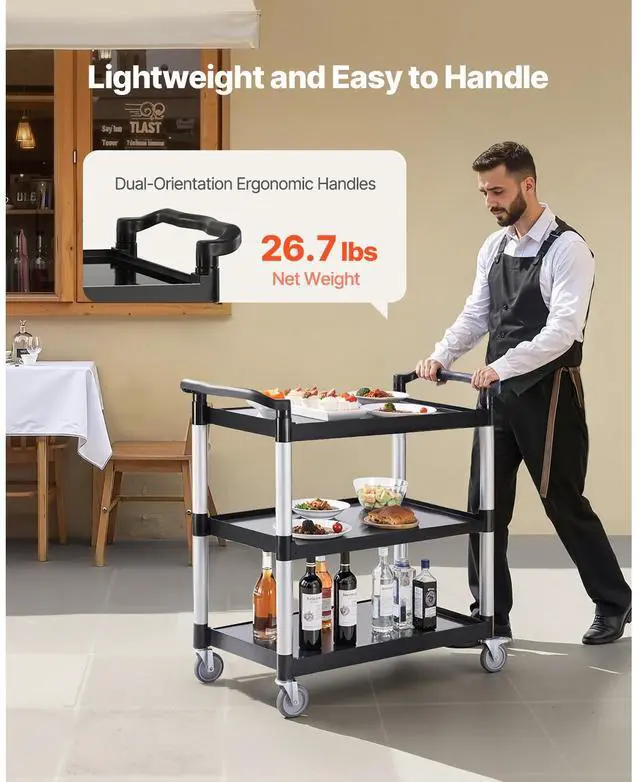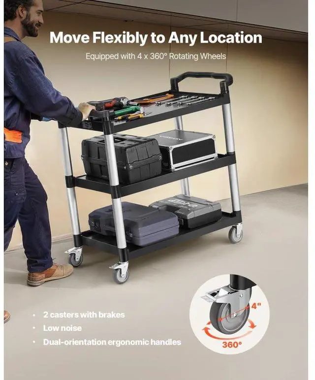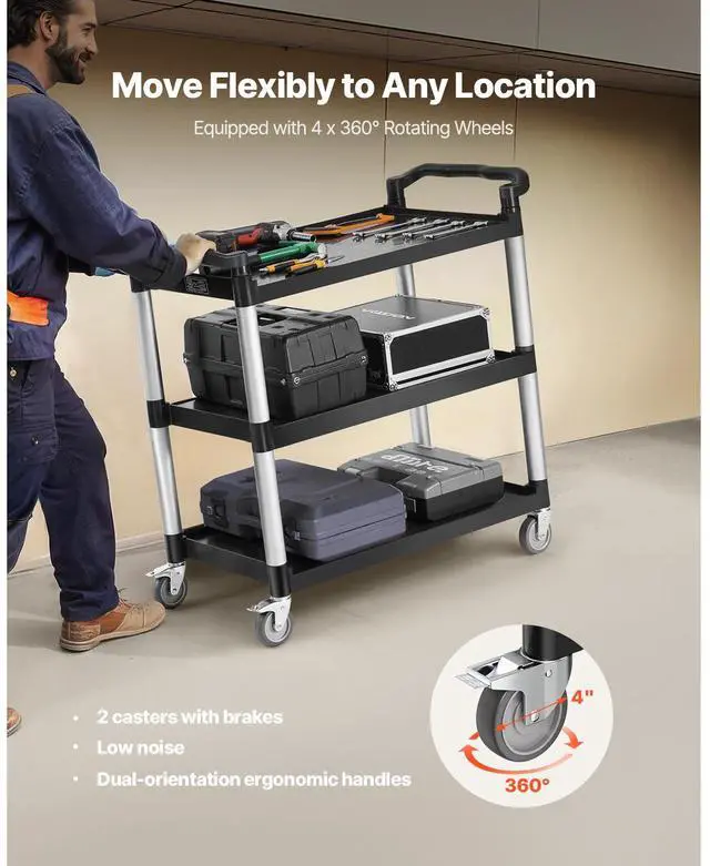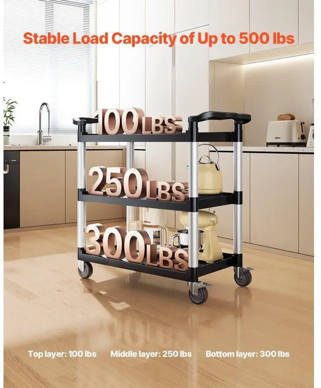 Heavy Duty Utility Cart 500 lbs Capacity 3-tier Service Cart with Wheels