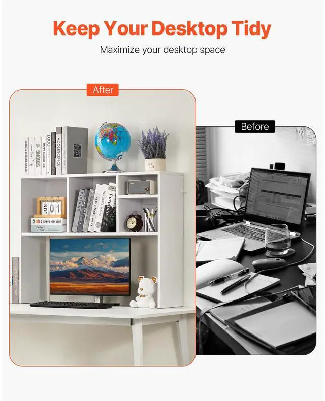 Desktop Bookshelf White Desktop Storage Organizer 1-Tier for Office & Home