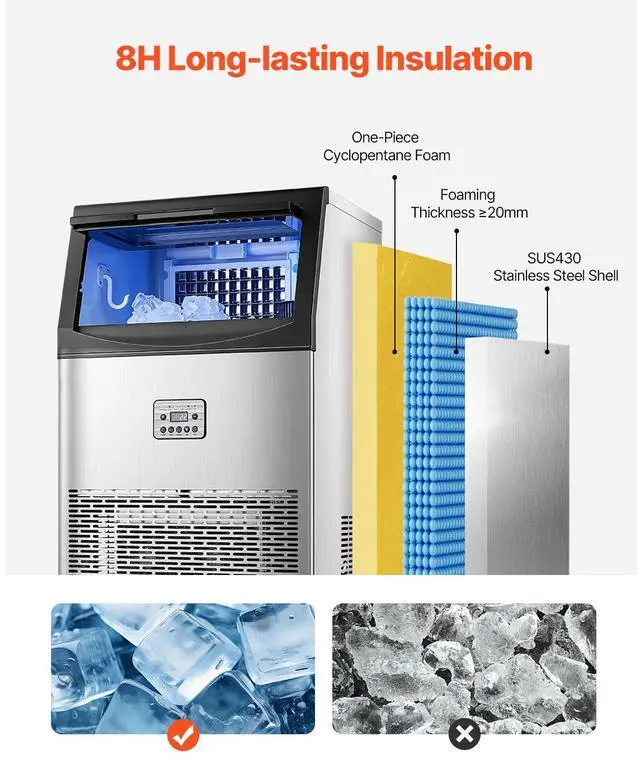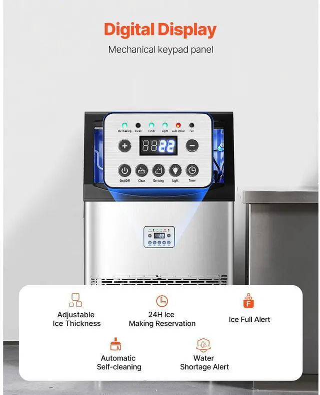 Commercial Ice Maker Freestanding Cabinet Machine 90lbs/24H 50 Ice Cubes