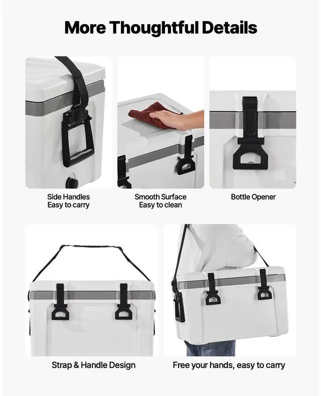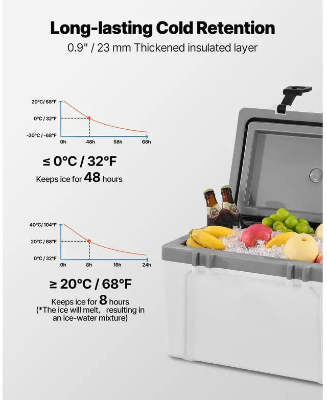 Capacity: 26 QT,Color: Grey-white,Item Model Number: SK2500,Insulation Duration: 48H (0°C / 32°F), 8H (20°C / 68°F),Product Dimensions: 20.5 x 13.4 x 13 in / 520 x 340 x 330 mm,Net Weight: 9 lbs / 4.1 kg,Main Material: PE + PP