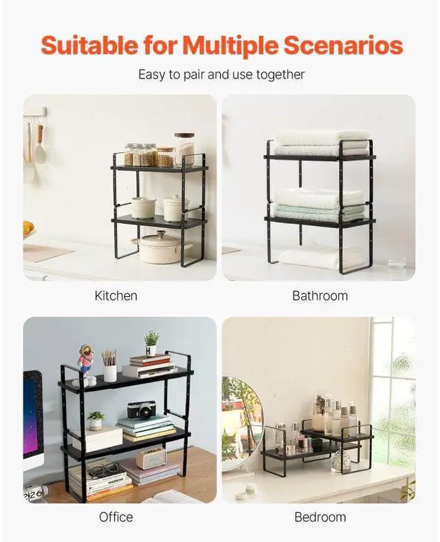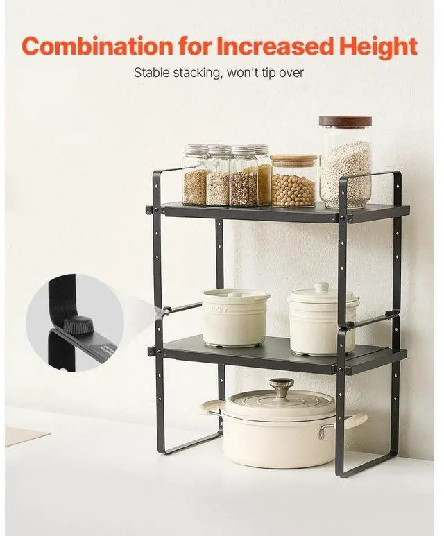 2 Tier Cabinet Organizer Shelf Counter Shelves Steel Kitchen Storage Spice Rack