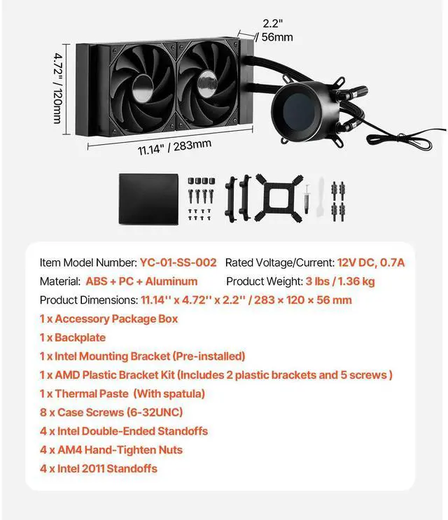 CPU Liquid Cooler AIO CPU Water Cooler with 120 mm PWN Fans for Intel AMD