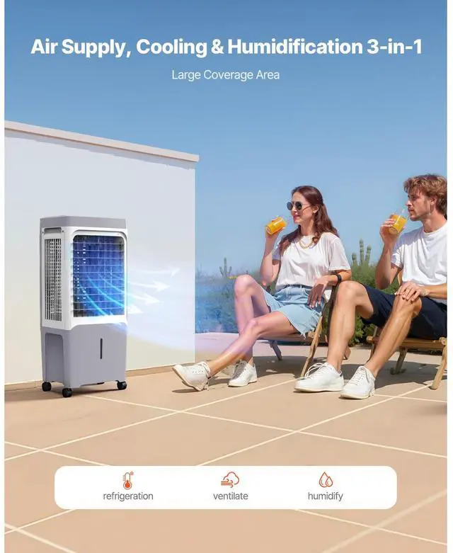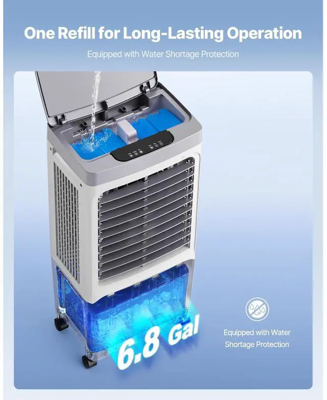 Evaporative Air Cooler 1800 CFM with 6.8 Gal Water Tank Portable Swamp Cooler