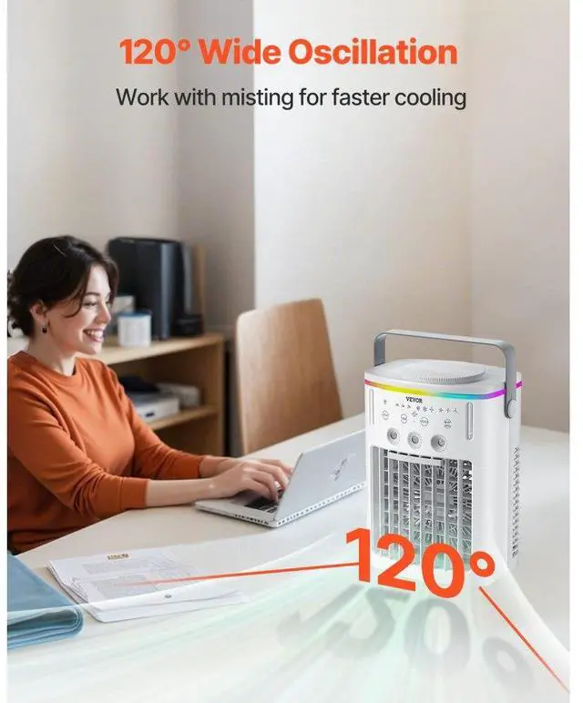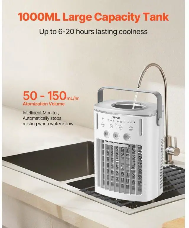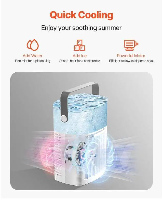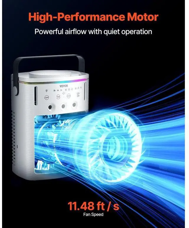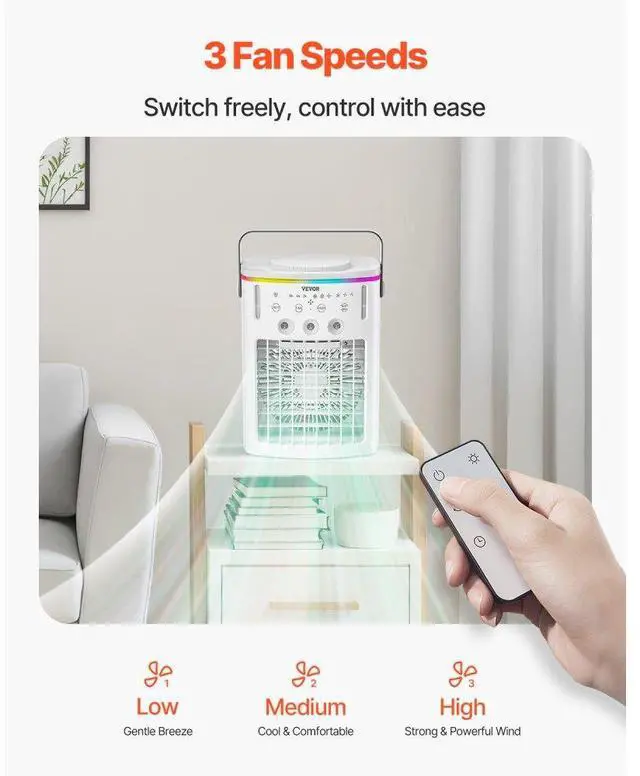 Portable Air Conditioner 4-in-1 Evaporative Air Cooler & Remote Control 3 Speeds