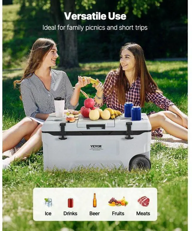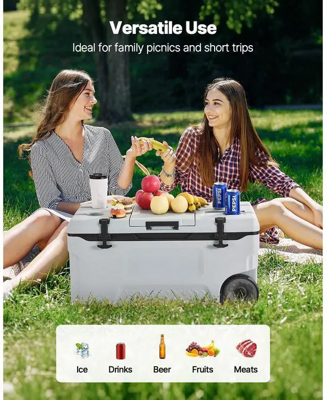 Portable Cooler 74 QT Insulated Wheeled Cooler 120 Can Capacity with Cup Holder