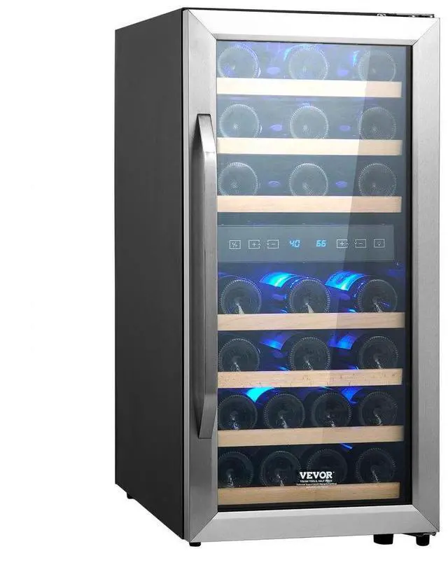 VEVOR 33-Bottle Wine Cooler Dual Zone Freestanding Refrigerator with LED Light