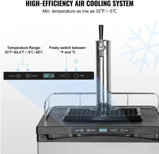 VEVOR Beer Kegerator Draft Beer Dispenser Full Size Keg Refrigerator Single Tap