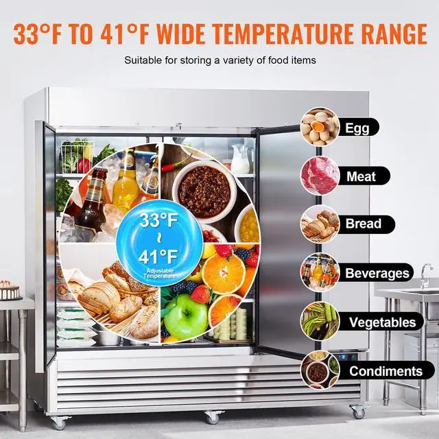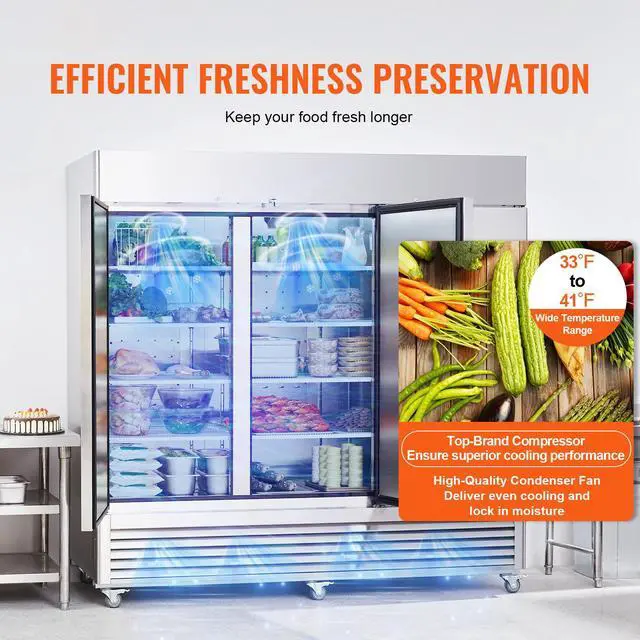 VEVOR Commercial Refrigerator 60.42 Cu.ft, Reach In 82.5" W Upright Refrigerator 3 Doors, Auto-Defrost Stainless Steel Reach-in Refrigerator & 12 Shelves, 33 to 41 Temp Control, LED Light, 4 Wheels