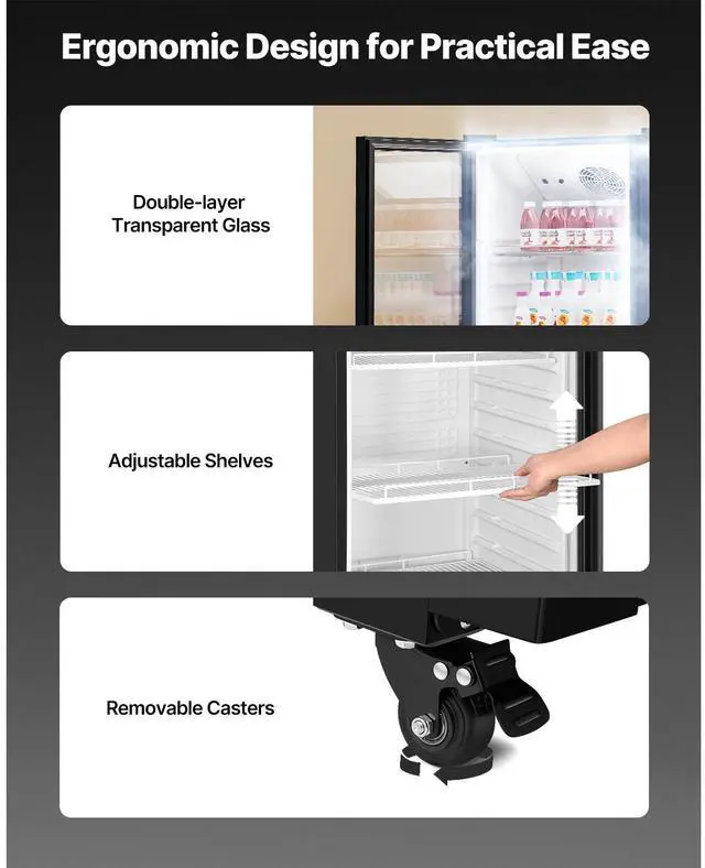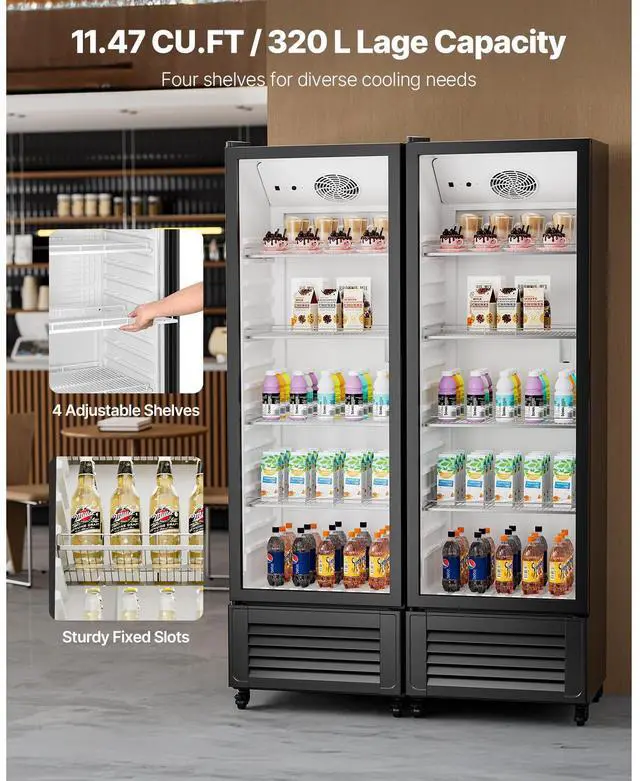 VEVOR Commercial Merchandiser Refrigerator 11.47 CU.FT Glass Door Beverage Fridge