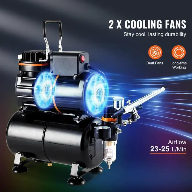 VEVOR Airbrush Kit, Dual Fan Air Tank Compressor System Kit with 3.5L Air Storage Tank, Air Brush Set with 0.3 mm Tip Airbrush, Holder, Color Mixing Wheel, Cleaning Brush Set, Art Nail Cookie Tattoo