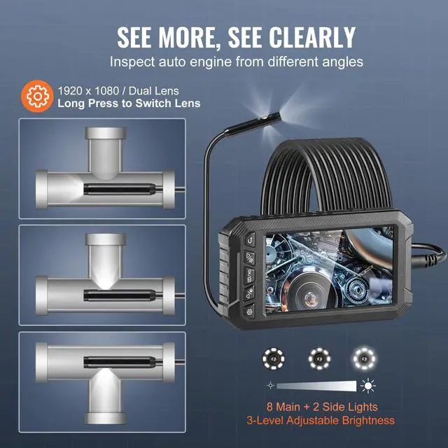 VEVOR Endoscope Camera with Lights Triple Lens Borescope 16.4FT Cable 5" Screen