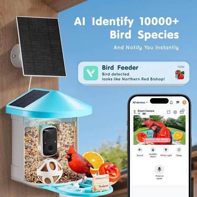 • VEVOR Smart Bird Feeder with Camera AI Identify 10000+ Bird Specie Solar-Powered