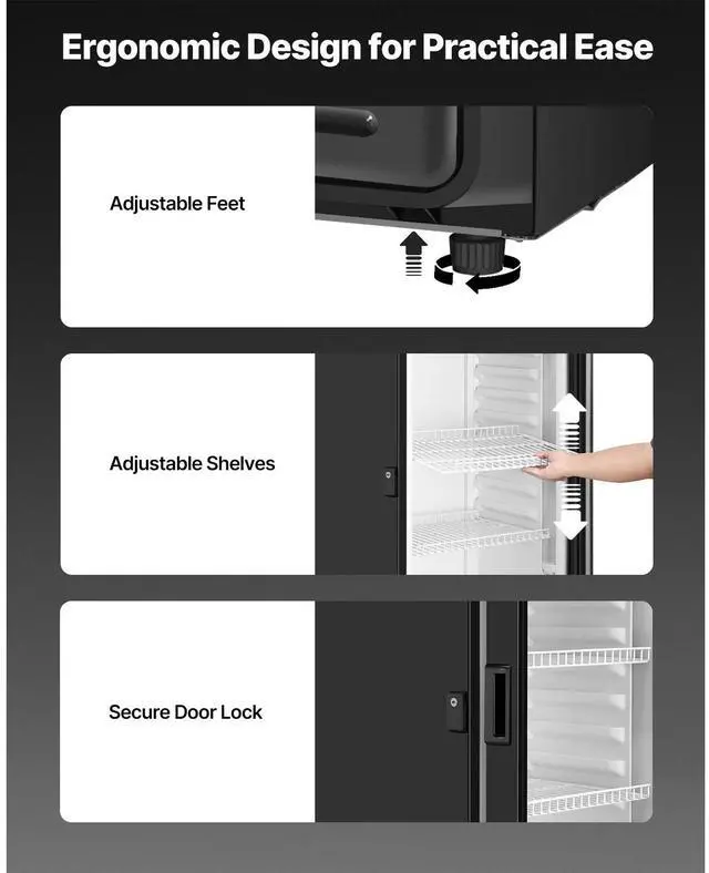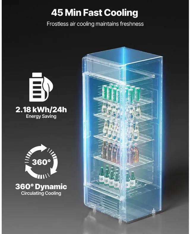 Number of Shelves: 5,Main Materials: Cold Plate Spray + HIPS,Cooling Type: Direct Wind Cooling,Capacity: 12.2 cu.ft / 321 L,Color: Black,Item Model Number: XLS-365WG,Item Net Weight: 147.7 lbs / 67 kg,Item Dimensions: 24.7 x 24.6 x 72.9 in / 628 x 625 x 1852 mm,Power Consumption: 2.18 kWh/24h,Adjustable Temperature Range: 7 Levels (32ºF-50ºF / 0- 10)