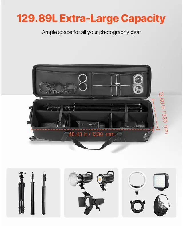 Studio Equipment Trolley Case 51.57 x 14.37 x 14.96 in Rolling Camera Carry Bag