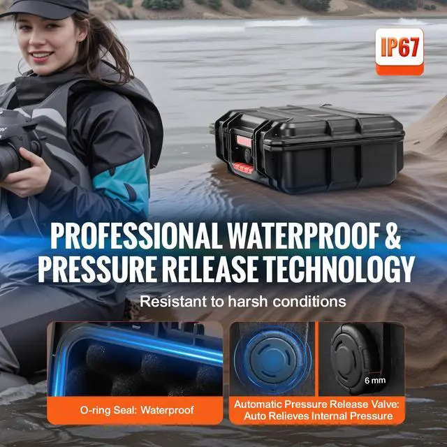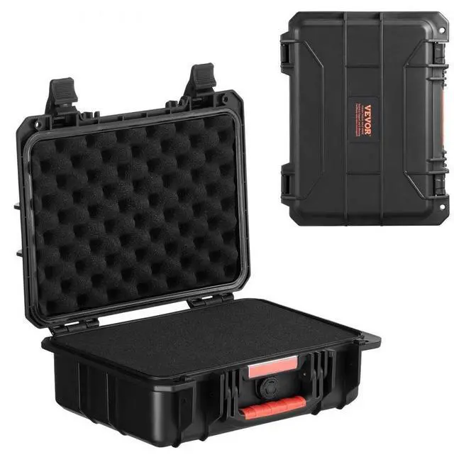 VEVOR 0.56 Cu.ft Weatherproof Hard Case with Handle Clips Padlock Holes PU Foam Protect Pistol, Microphone, and Camera Equipment