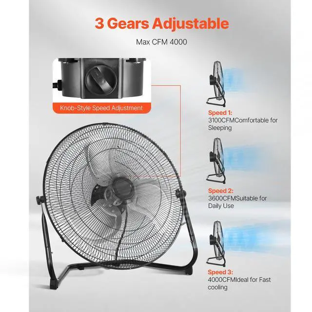 18 Inch Floor Fan 3 Speeds 360° Adjustable Tilt High-Velocity Industrial Fan