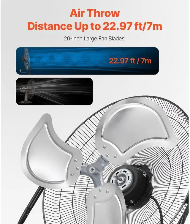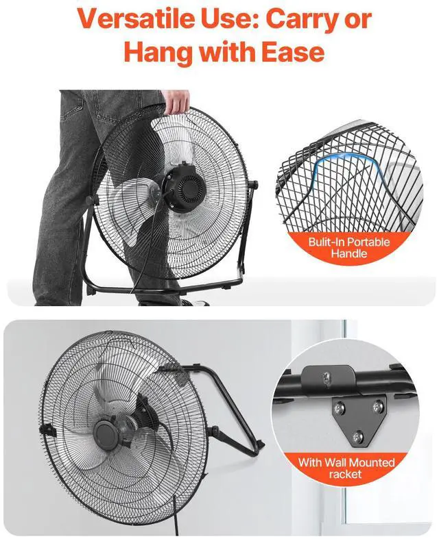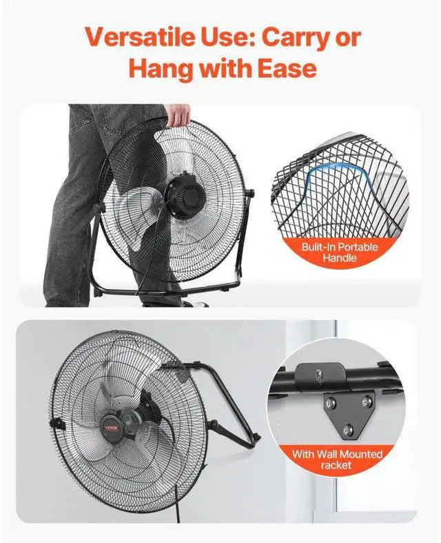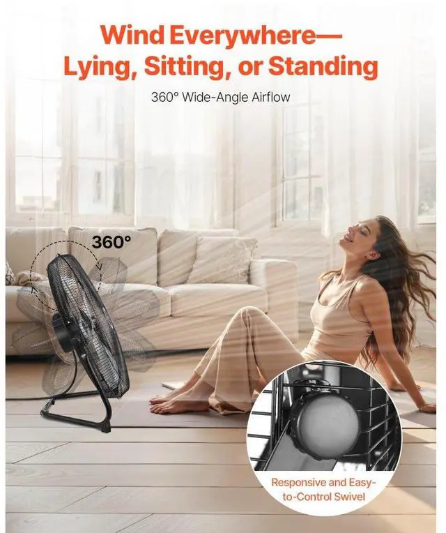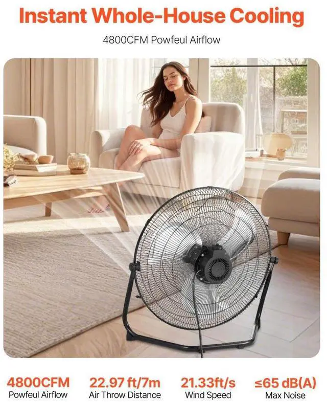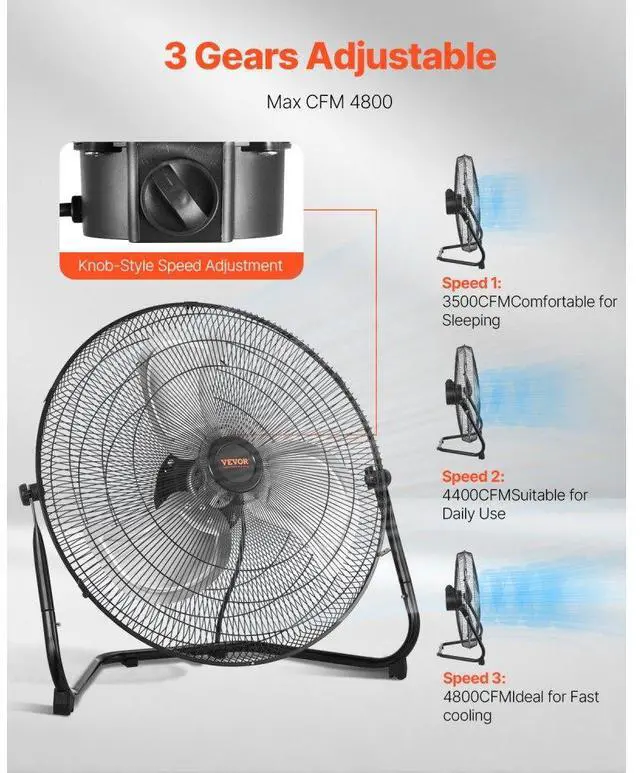 • 20 Inch Floor Fan 3 Speeds 360° Adjustable Tilt High-Velocity Industrial Fan