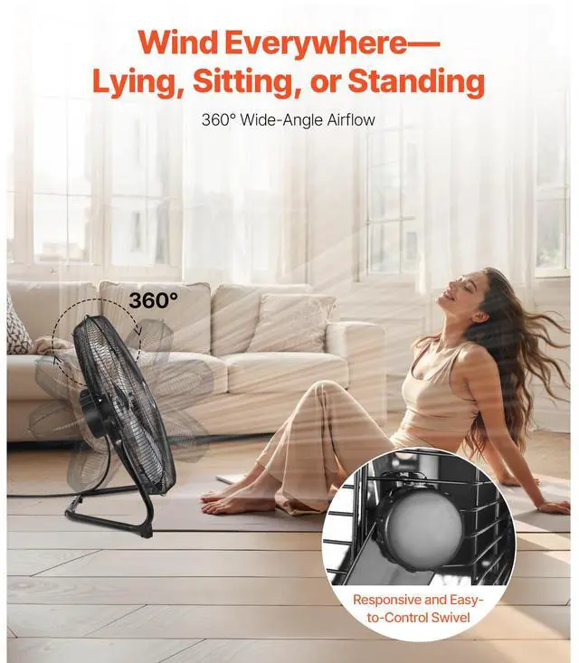 VEVOR 20 Inch Floor Fan 3 Speeds 360° Adjustable Tilt High-Velocity Industrial Fan