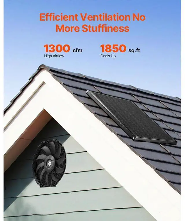 • 12 Inch Gable Mount Fan 1300 CFM Attic Exhaust Fan with Adjustable Thermostat